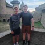Today we woke up a little earlier than usual and had our morning meeting at 9:30am. We played some games to wake up and shared some of our highs and lows of the night before. Then we left on the bus to the Château de Castossau to do some more service work. It was about a 45 minute drive and when we arrived, our wonderful guide, Gauthier, met us with a warm smile and he took us on a short tour of the ruined castle. During the tour, he explained how fires and other disasters slowly destroyed it, and his plans for restoration. After working for a couple hours, we ate lunch in the grass just as it started to rain. We took shelter in the nearby village, and after the rain stopped, we got back on the bus to go have a blast at the water park.