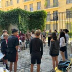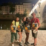 Our last day of the trip started off with a bang. BANG! We were bestirred at 6:45 am — a quite antediluvian start to the morning to be sure, but at this point, we’re crackerjack early birds. Our breakfast at the FIAP included more bread, mini crepes, and lots of confused anger at flummoxing magnetic cutlery, mostly coming from a certain Grenoblin. Yum! We caught the 8 AM bus to the Palace of Versailles, and after a 45 minute bus ride, we laid eyes on the Sun King’s Palace. We spent an educational 90 minutes at the château and then walked across the gardens to our lunch spot, La Petite Venise, where we got mostly pasta, chicken, and some even got fish. Yum! After lunch, we hopped on some rental bikes to cycle around Versailles some more. Our first stop was Marie Antoinette’s house, which was probably bigger than it needed to be. We then walked through her garden, which included lots of green leaves and green water. Yum! Then we hopped back on the two-wheelers to explore more of Versailles, including the site of the Olympic pentathlon, which includes fencing, swimming, show jumping, pistol shooting, and cross country running -and the best part is that no one knows why in the world it exists! Yay! We finished our expedition and walked back to our bus through the beautiful Versailles gardens. The sky was blue and bespeckled with fluffy cumulus clouds, and the plants were cut into complex, unnatural, and mind-boggling geometric shapes, like, for example, circle and square. Our 45 minute bus ride took us to the Louvre, where we had around two hours to explore in groups of three or more. We saw very famous pieces, such as statues, paintings, and mummies. Ooooo, scary! Also, a little known fact for you: the Mona Lisa is there. Yay! After the educational exploration of the musée, we took the metro to a delicious Moroccan dinner place. We had tagine, couscous, and almond and pistachio pastries for dessert. Yum! When we were done with dinner, we took a long walk to a riverside location for our final group meeting. There, we exchanged memories through games. We played a game where we stood in a circle with our backs facing in and some people in the middle would tap the shoulders of those on the outside if they matched a certain prompt, which was very fun. We also talked about our rose (highlight), thorn (lowlight), bud (learning experience), and watering can (person who helped us learn) of the whole trip, and some tears were shed. At the end, we gave each other paper plate awards with “most likely to…” and then exchanged some very bittersweet final hugs. Then, we had to skedaddle in order to catch the metro before it closed for the night. Back at the FIAP, we got our phones back, but most students elected not to spend much time on screens and instead revel in our final hours together. Those taking the Global Works flight back to New York have to catch a 4:30am bus, so most people are just staying awake until then. Yippee!