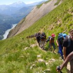 They were other students in the group who had to run up to their designated person when they were alone and waterbottle-less and say Tué to eliminate them from the game. After breakfast we had a quick meeting on the gitê porch surrounded by the mountains, the trees and a little French boy named Liam. He was a Mizöen local who stood alongside our guide Laurent as he outlined our hike for the next 3 days. After sunblock was applied, hiking boots were tied and water bottles were filled we walked through the quaint town of Mizöen to start our long journey. As we started, somewhat reluctant, Liam managed to guide us and keep positive cheer going. Katie, Patrick, and Edwina made sure to keep us on the right path, reminding us of the beautiful views that we encountered on our walk.