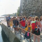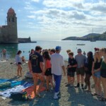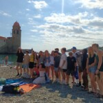 This morning we woke up earlier than usual to catch our morning bus at 7:30am to head to the Mediterranean Sea! After a long 2 1/2 hour bus ride of playing games and sleeping, we finally made it to the beautiful ocean with clear blue water and lots of people. We went on a walk to see our boundaries which included a stunning castle and long pedestrian streets with small shops we were able to visit during our free time. Furthermore, we all went to lay out our towels to claim spots on the rocky beach and took a dip into the icy water. Some of us swam, others shopped and others laid out and enjoyed the warm sun. Everyone brought packed picnic lunch from our lovely host families and enjoyed it on the beach. We were given five hours to roam, swim and play games on the beach until it was time for us all to meet again for our daily goûter. Everyone gathered their things and left the beach, making sure to pick up all trash in order to leave it just as we found it.