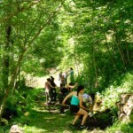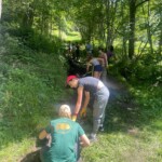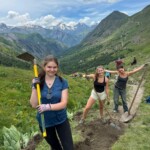 Today was our earliest start so far on the trip, at around 7:00. After another delicious French breakfast (along with some amazing coffee, courtesy of our host Sam), we played some more games to get to know each other’s names and interests along with our morning meeting. The locals with whom we worked yesterday showed up with perfect timing, just after we had completed our morning meeting, and drove us to the trail we worked on yesterday. Today was our first full day of service work, and we made the most of our time on the trail; digging a canal to divert water away from the trail, and continuing our work on the rock wall.