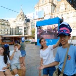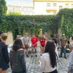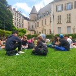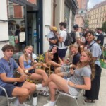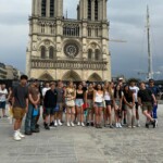 Waking up on our plane ride to France had everyone excited for what was ahead. After landing, our trip leaders Nahely and Edwina got us safely through security and we all collected our bags. Then we met with our other tour trip leader, Patrick, who gave us the rundown of what was next. We arrived at our hostel, were we also met trip leader Katie and our last two new friends. We had time to unpack, settle in and then went on a walk to stretch our legs and have a small orientation at a park nearby. It was filled with French people of all ages. While at the park, we learned about each other through games and bonding activities. Then, walked around Île de la Citè and saw the Notre Dame, Sainte Chapelle, and the conciergerie, where Marie Antoinette was held before she was beheaded. After our litte tour we walked to dinner, where we tried crêpes with different varieties of savory toppings and then had some with sweet topings like Nutella, caramel, maple syrup, and jam. When everyone had finished, we walked back to our hostel and split up. Some people were tired and went back to their rooms, and the rest went on an evening walk around the city.
