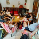 Today we woke up early and ate a typical French breakfast. There was cereal, bread and orange juice, awesome! After finishing our breakfast, we cleaned up our rooms, packed our things, and prepared for a long day of traveling. Before leaving the hostel, we played a couple of fun team-building games. The first game we played was “I love you, do you love me?” It was a game that helped us learn each others names and we got to move around. One person would ask someone else in the circle whether or not they loved them. If the answer is yes, the person would have to continue asking until someone answered no. Once someone said no, they would make a statement and everyone who it applied to would have to trade places. The next game we played involved ducking when a trip leader said your name. The people next to you would then have to say “Bang!” before the other person can. After our games, we drove to the train station to board our train to Grenoble. The train ride was originally three hours long, but a delay pushed our arrival back another hour. We hopped onto another 2 hour bus ride after the train, but it was worth it because we finally made it to the Alps. After a quick orientation and French lesson, we settled in and played a couple more ice breaker games. Finally, we ate a delicious homemade dinner before making our community contract which listed our expectations for our community.