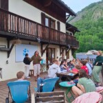 Today was another jam-packed day of adventuring in the Alps! We had an early morning, waking up around 7:15 for another incredible French breakfast: this morning consisting of homemade croissants, cereal, and some much needed cups of coffee. In a quick morning meeting, we were briefed on the day’s plans and given two options. We could either stay at the refuge and help our hosts with various odd jobs or hike to the glacier lakes nearby. For those of us who chose to hike, were expertly advised, again, by our incredible guides (Marie, Fabrice, and Larant). The walk had more gorgeous views of the mountains of Mizoen and its various waterfalls and streams. After a morning of hiking, we finally reached the glacier lake and ate our delicious homemade lunch courtesy of our hosts. Then, we had the option to go for a quick swim in the frigid water. After acclimating to the temperature, it was surprisingly refreshing! We took a different route back to the refuge, full of more amazing views and tons of flowers. Once we returned, we had goûter and had more options for how we wanted to spend our afternoon. Some of us opted to help out Larant, carrying bags of salt to the goats for nutrition. Others stayed back and played various board games like Cluedo (French Clue) and Jenga Boom. Next we sat down for dinner, and were quickly warned of our coming meal of Donkey Ears, a French classic. However, dinner ended up far less scary than it sounded: a pastry filled with potato filling that they called Donkey Ears, roasted chicken and pork, and a cheesy spinach dish. We ended the day with a briefing of our coming travels and late night star gazing. We’re all excited for a final day of hiking tomorrow!