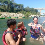 Today we woke up in the old city of Avignon and were fed with a delicious array of French pastries, yogurts, drinks, and more. After eating, we all returned to our rooms to finish packing up our things before heading downstairs to meet up with the rest of the group. We all struggled with our luggage as we took a brief walk to a local park for our morning meeting where we discovered our upcoming host families and discussed what we looked forward to the most. Then, we continued our walk outside of the beautiful Avignon walls to meet our bus and begin our journey to Carcassonne. After around 20 minutes of a regular, calm bus ride the bus suddenly came to a halt. The bus had shut down and that resulted in us causing a miles long traffic jam and a serious delay in our schedule for the day. After what felt like forever (but was only two hours) we were rescued by another bus where the luggage, and ourselves, were transferred to. We then continued our travel and finally reached Pont du Gard where we had a quick picnic next to the river before preparing ourselves for boarding our kayaks. We kayaked for around an hour before stopping at the end of a rough stream where we were relieved of our overheating and attempted to fight the current. We continued kayaking again until we reached the remarkable Pont du Gard aqueduct and took another dip in the water. Everyone was shocked at the amount of locals enjoying the river as we passed several families and friends. Finally, we finished our voyage of kayaking on the river and all rushed to the bus where we prepared ourselves for meeting our host families. We boarded the bus again for a final time and then went our separate ways with our new temporary families. We adapted to our new homes and enjoyed a friendly French meal before heading to bed. Bonne nuit!