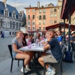 Today was the latest we’ve slept since the first day, with a wake up knock at 7:45. The city’s energy helped propel us forward during our walk to a concrete plateau for morning meeting. We were briefed on our day, our tour guide timed his arrival perfectly, and we were almost too excited for the first event of the day. Geoffrey was excellent, and if it wasn’t for the heat, the tour would have been super amazing. Throughout the day we noticed how the urban heat island effect is more prevalent in Avignon than Grenoble, we decided that it’s most likely due to lack of green spaces, and large amounts of low albedo surfaces. After the tour, we skipped over to the local grocery store for a French-group-lunch-scavenge activity. We were split into groups and assigned different sections of lunch to purchase; my group was in charge of olive paste, meat and olives. My group easily bought all that was asked of us, and we were so wonderful that the olive person gave us two free cases of olive paste! We then hiked up more concrete (which is perpetuating the urban heat island effect) to a nice green park where we ate lunch. The heat today gave everyone a stern reminder of how nice (and brisk) Mizoën and the Refuge were, but we made sure to remember that things are not bad because they are different. We then visited Avignon’s famous bridge, that was so bad at being a bridge it was abandoned and turned into a tourist attraction. It also doesn’t even go across the river, so it’s not even a bridge? After that adventure we began a group scavenger hunt with the same groups that we had for the french-group-lunch-scavenge activity. My group struggled, and with the urban heat island effect at full force we almost gave up. We decided some of the targets on the list could be shammed, so we created a new version of the song, “Sur Le Pont d’Avignon”, and then pretended we found a fountain by pouring out a water bottle in front of the camera. Our two hours of free time began shortly after the scavenger hunt rankings were announced. My group’s bad mood was quickly swept away by ice cream and the focus needed to correctly navigate this bustling city. Tonight we are having another authentic French dinner, except this time at the 144,123rd oldest restaurant in France instead of the second. Tomorrow we meet our host families, yay!