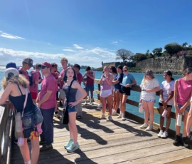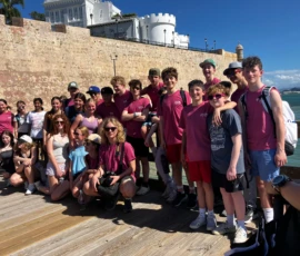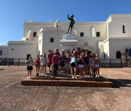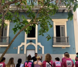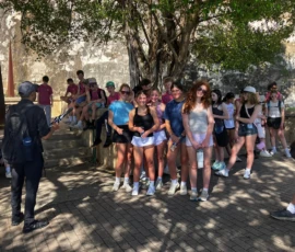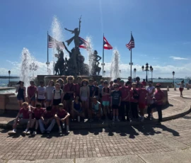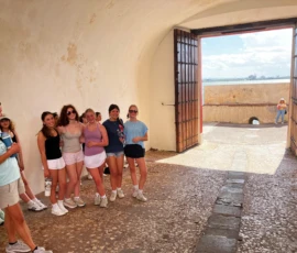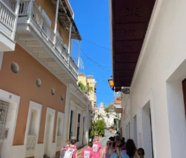 Today was an early morning for the Glen Urquhart School eighth graders. We had to arrive at Logan Airport at six o’clock in the morning for our departure to San Juan, Puerto Rico. We landed at noon, and as soon as we stepped out, all of us were hit with the bright Puerto Rican sun. We then made our way to a restaurant with a stunning view of the beautiful teal colored ocean where we had a delicious lunch. After it, we met up with a local tour guide who showed us the way around the historical Old San Juan. On our tour, we saw numerous monuments, churches and other historical landmarks, each with an explanation of its historical significance from our guide. After our tour we walked around in the art district of Santurce looking at various murals and graffiti, including the largest murals in Puerto Rico.