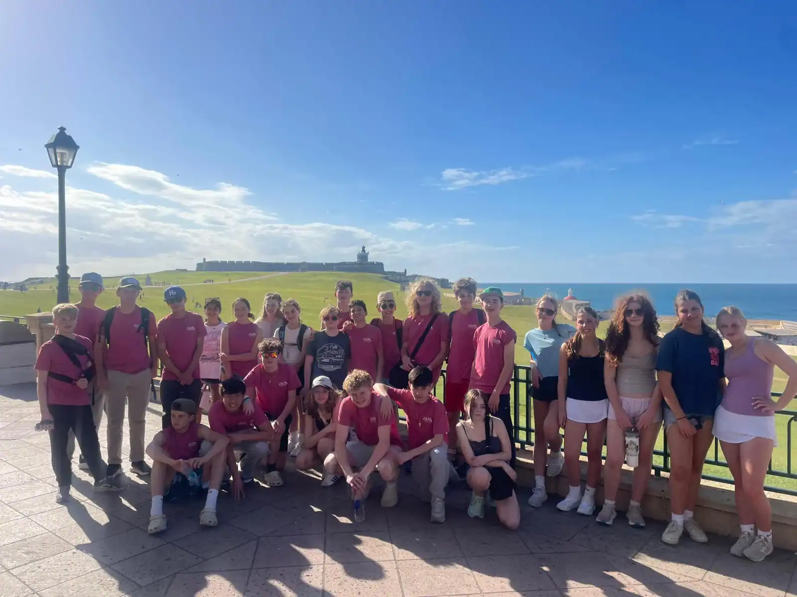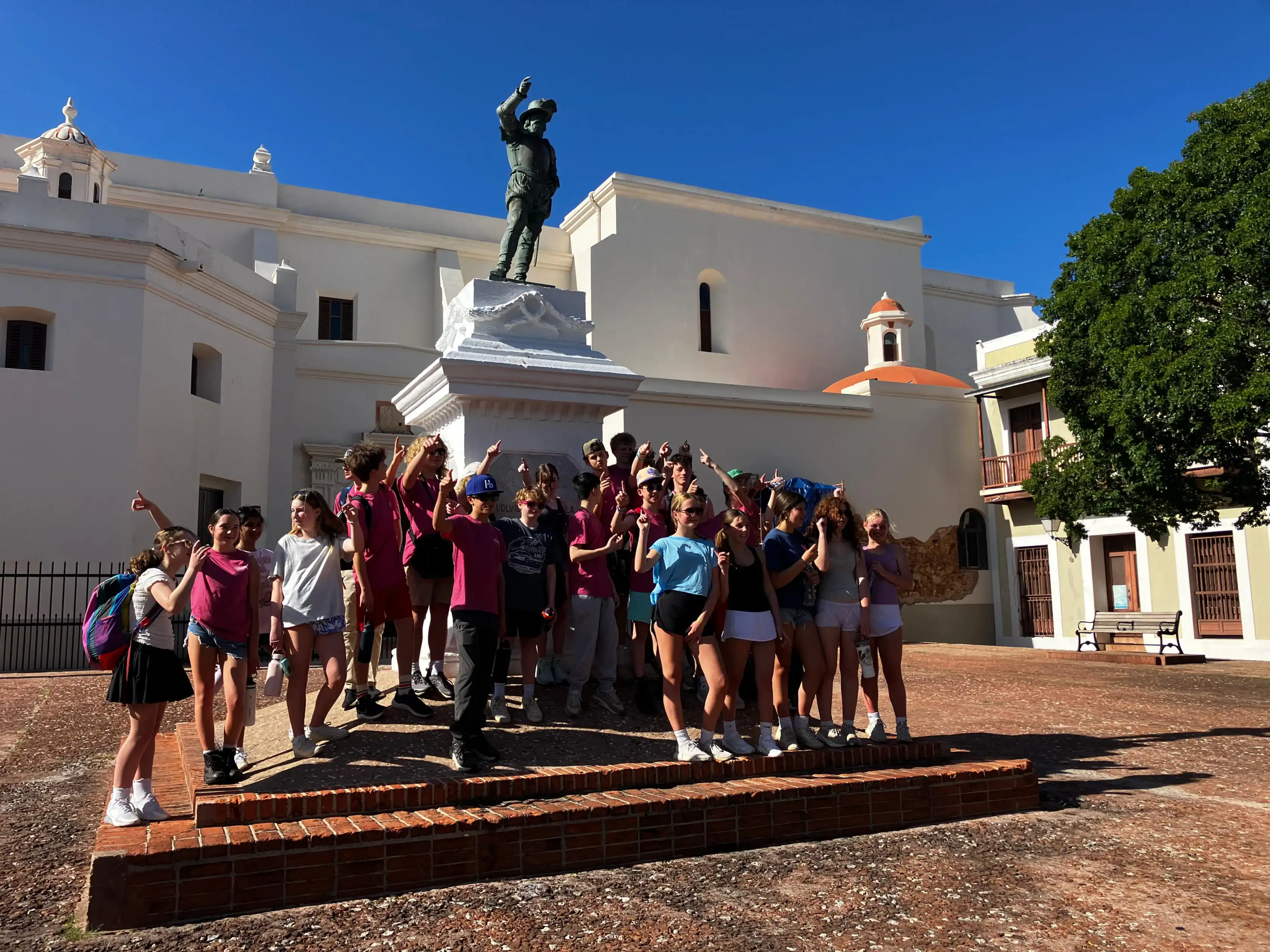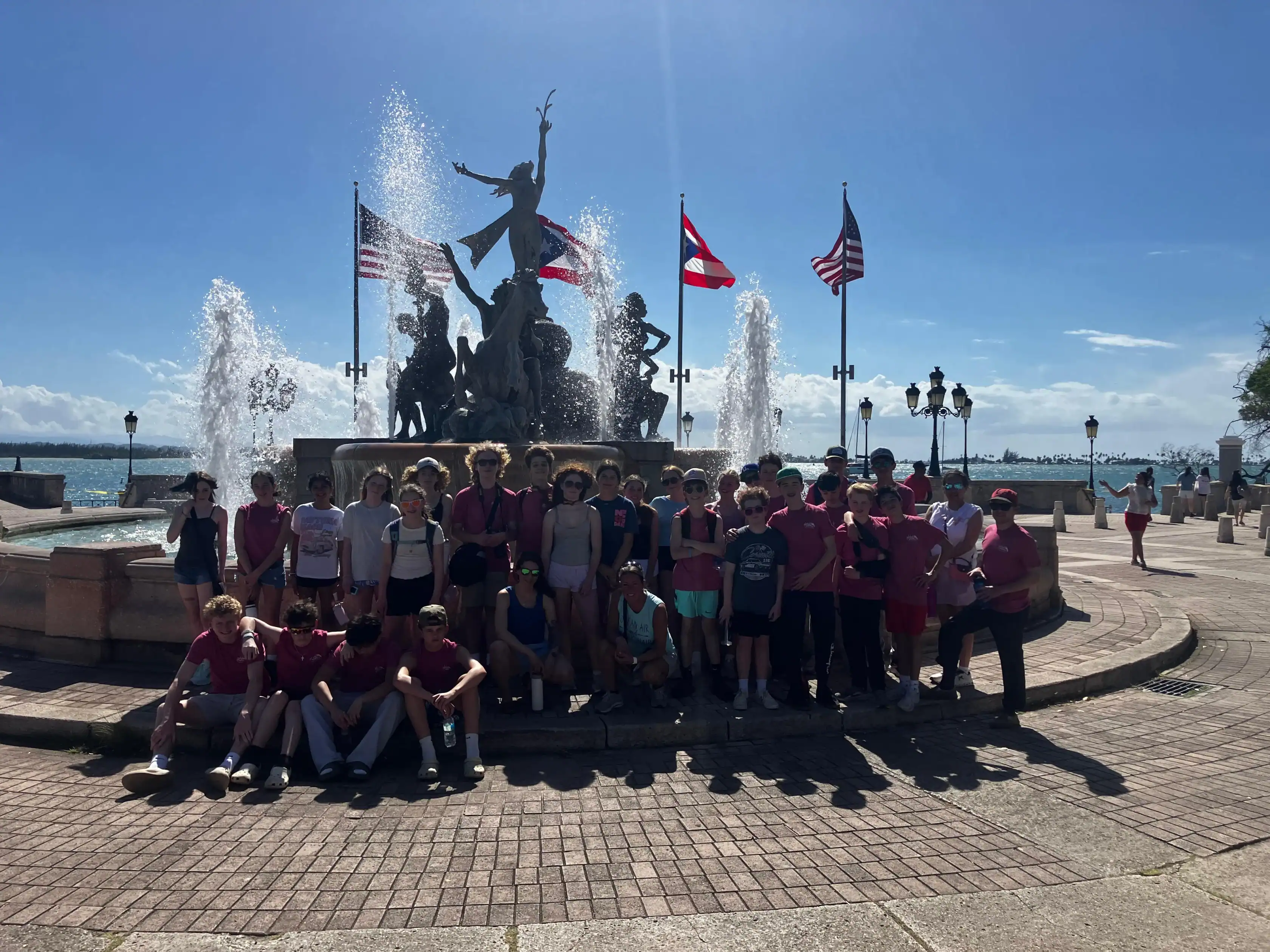 Today was an early morning for the Glen Urquhart School eighth graders. We had to arrive at Logan Airport at six o’clock in the morning for our departure to San Juan, Puerto Rico. We landed at noon, and as soon as we stepped out, all of us were hit with the bright Puerto Rican sun. We then made our way to a restaurant with a stunning view of the beautiful teal colored ocean where we had a delicious lunch. After it, we met up with a local tour guide who showed us the way around the historical Old San Juan. On our tour, we saw numerous monuments, churches and other historical landmarks, each with an explanation of its historical significance from our guide. After our tour we walked around in the art district of Santurce looking at various murals and graffiti, including the largest murals in Puerto Rico.