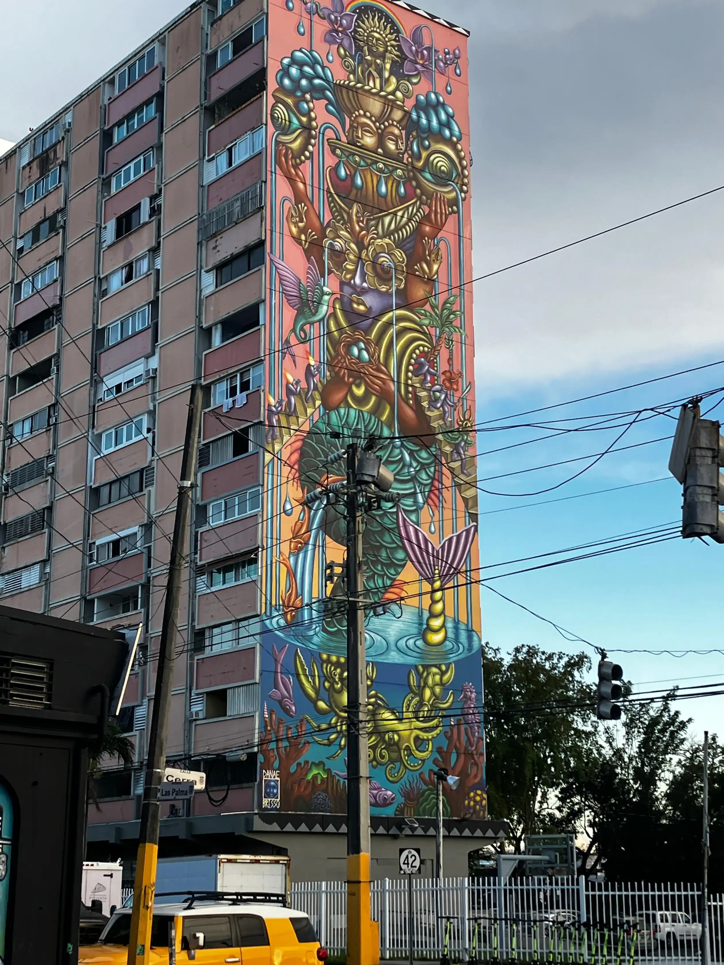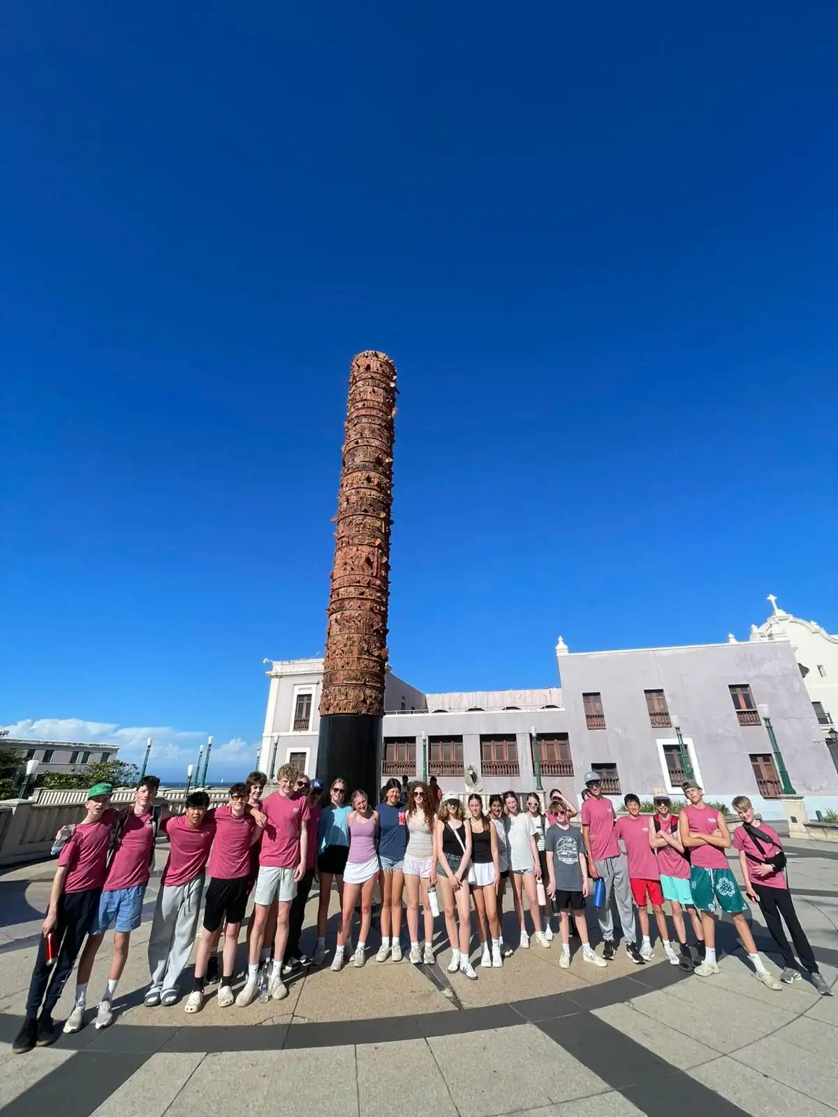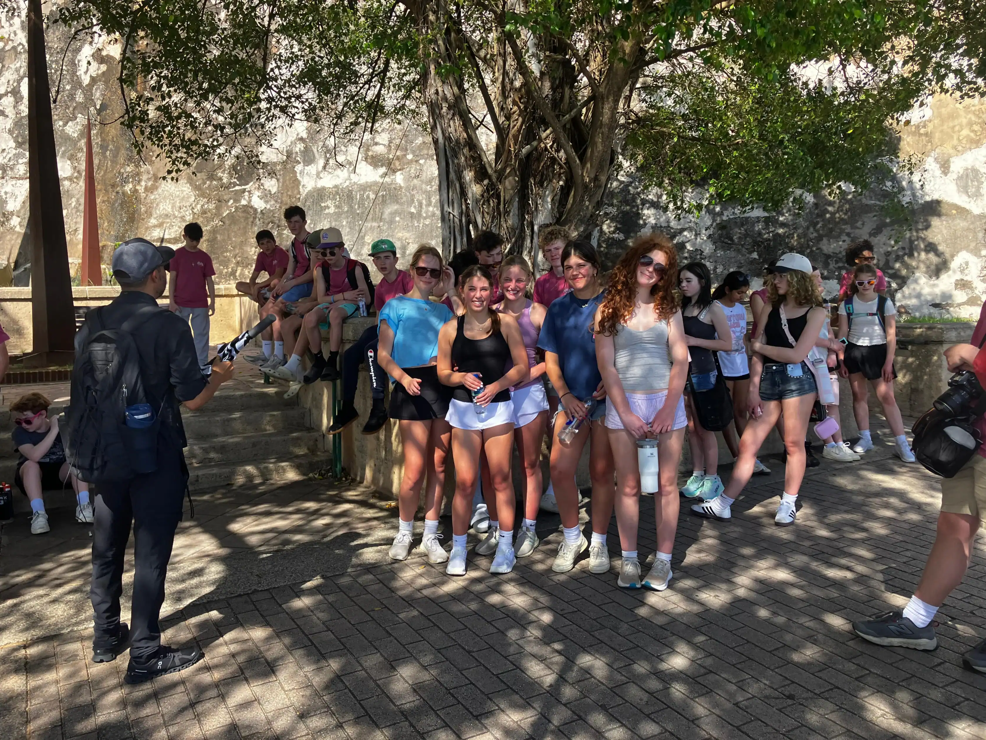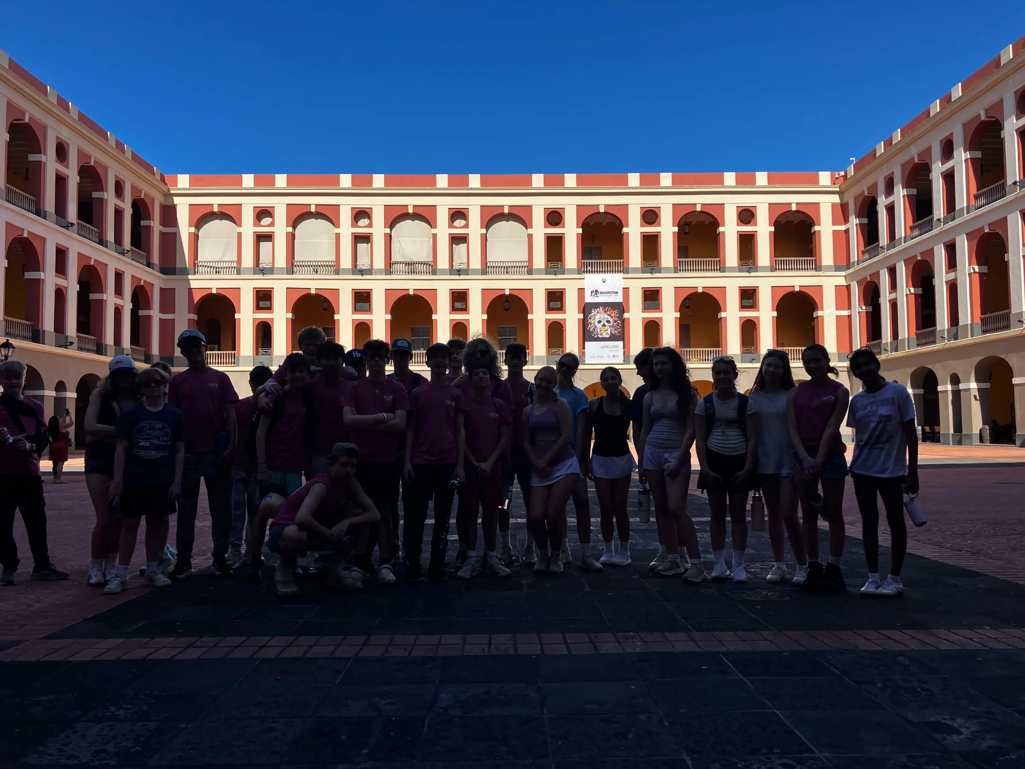Today was an early morning for the Glen Urquhart School eighth graders. We had to arrive at Logan Airport at six o’clock in the morning for our departure to San Juan, Puerto Rico. We landed at noon, and as soon as we stepped out, all of us were hit with the bright Puerto Rican sun. We then made our way to a restaurant with a stunning view of the beautiful teal colored ocean where we had a delicious lunch. After it, we met up with a local tour guide who showed us the way around the historical Old San Juan. On our tour, we saw numerous monuments, churches and other historical landmarks, each with an explanation of its historical significance from our guide. After our tour we walked around in the art district of Santurce looking at various murals and graffiti, including the largest murals in Puerto Rico.