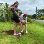 Today was our second morning back at Heliconias. We woke up to sunny blue skies. For breakfast, we had toast, ham, eggs, and the option of fruit. The hotel dog, Onyx, hung out with us for a bit. After breakfast, we headed out to El Futuro to continue our third day of community service. We arrived and our group split into two. One group dug holes, mixed cement, and poured it, while the other painted the doors of one of the community buildings. The weather was pretty good today. It was sunny and warm in the beginning of our work, but the clouds rolled in and blanketed us from the scorching heat of the sun. Even with decent working conditions, we made sure to stay hydrated and take breaks. We would go to the store across the street to buy drinks and snacks to keep us motivated through our work. Lunch was at noon, so we wrapped up painting/digging a bit before to rest up. Lunch was soooo good. We had a ground beef patty with masa, fried yuka, a salad type thing, and rice and beans. The drink was strawberry banana juice and it seems popular among everyone.
