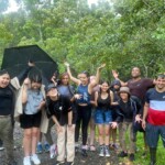 Even though we had to wake up a bit early today, we were able to jump into our activities (Asis Rehabilitation Center for Wildlife, but I’m getting ahead of myself). Starting with a delicious breakfast of pancakes, eggs, and, of course, fresh fruit, we were able to talk with each other and be able to get excited for the day. Once we got to Asis Rehabilitation Center, we had a little bit of time to check out the gift store before our tour began. (Most of us got something for our families, but no spoilers!) The tour began! We saw spider monkeys, white faced monkeys, native pigs, macaws, toucans, raccoons, and more! We even saw some more poison dart frogs. The next stop for our adventures was lunch, a delicious restaurant that served the virgin pina coladas in pineapples with fruit faces! Since there was no rain, we figured it would probably be best to check out a nearby waterfall now in case it began to rain in a little, and with what we had experienced the day before, we were more than willing to take the chance to miss getting drenched by the rain, and while the bus ride was long, it was worth it! The walk there was long and hard (500 steps down, and up… yes that is 1,000 total!) but swimming in the river and being able to take pictures with the beautiful waterfall was worth it 1000%. We spent longer than expected swimming and enjoying the nature of Costa Rica, so we weren’t able to adventure in the wilderness that is downtown La Fortuna, but that’s okay, because when we got back to Heliconias, we got a dance lesson! We learned three new types of dances, and kept dancing through dinner, which was (of course) amazing. After dinner and out nightly meeting, we still had a little bit of free time before lights-out. Some took that as extra sleeping time, extra long showers, or some more swim time in the pool. Either way, we are all worn out from the day, but ready for what comes next.