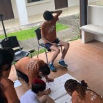 After swimming we cleaned up and went to dinner. We actually ran into this other Global Works group at dinner who were amazing. For dinner we had fish, fries, and rice which was delicious since we had this really good alfredo sauce over our fish. After dinner we usually do debriefs so for today we had to draw something on a flashcard to describe something about today. It was cool to see everyone’s explanations of their drawings since everyone had a different experience. It was time to go back to our rooms and say bye to Brandon. While we were on our way back a group of us met these awesome people from London and kicked it off so well. We wanted to talk more so we walked to this soccer pitch and just sat there and talked to them for almost an hour. It was super fun, but we had to get some sleep so we went back into our rooms.