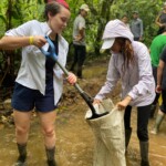 A hard day in Costa Rica! We started off the day, with a healthy breakfast, from our great cooks, and spent our first night in the Cloud forest. Not alone though, we had some bugs around our rooms and crawling around. Waking up bright and early at 7am was quite the change for many of us, some of us tired, others wide awake and ready for our long day of work ahead, with many adventures. Our breakfast was quite plentiful today, we had some waffles, along with some fruit, and a drink made out of a fruit that was just the best. After our breakfast, we had gotten a presentation, from a lead scientist at the Cloud forest, about some of the interesting facts and restoration of Costa Rica. The Cloud forest alone had many species of frogs, birds, snakes, and even more animals, along with the slow and impactful change that has been going on in Costa Rica, raising the amount of Forest that take up the country. After our very informative presentation, we got some boots on, and walked down the trail to our work site for the next couple of hours. For our work, we filled up bags with sand from the river, and right after would dump the sand, to make a strong trail together. Even with the many holes in our boots, that rushed in with water, and our scaling system to 106, we worked hard for two hours and persevered to the end. After our relentless work, we went up for lunch, and had a hearty soup, with many different vegetables, some I would never even have unless I went on this trip. After taking off our boots, and putting on a new pair of socks, we went back down, to finish up our job, some of us switched, others decided to change their jobs. Just when we were getting back into the groove of things, a sudden burst of rian started coming down, and lightning started striking, so we decided to go back up. The rest of our day was open, and we used our time, playing UNO, showering and making jokes. Nearing the end of our day, we had a new member added to our team, Andy who had been gone on other trip, but still made it on time to join us for dinner. To end off our day, we went on a night walk, where we found tiny snakes, many many, frogs and toads, and some creepy bugs. Lastly at the end of our walk, we were told to turn all of our flashlights off, and got shown some bioluminescent sticks, which were really just fungi instead.
