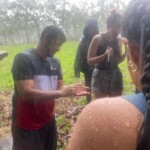 We had finally finished both sections of the project when it started to pour rain again (not unlike Crisley’s farm). While most of us stayed inside where it was dry (despite the rain coming in from under the doors and through the windows) some of us decided to take the (possibly once-in-a-lifetime chance) to go “frolic” in the rain for a second time.