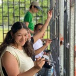 When the concrete and painting group both got to a stopping point, it was the perfect time to take another break for a delicious lunch of rice and beans, plantains, avocados, fish, and some veggies. After lunch we got right back to work: painting the outside of the building and setting in the final posts of the fence. (When we get back to El Futuro, we will be able to finish the fence!)