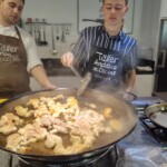 It’s still super hot today, about low 80 to 90. We took a tour in the Triana market (I was built in 1823) where we got to know saffron, a spice from a certain flower growing in the center of Spain. We saw different kinds of olives for dishes, beer and oil production. Our tour guide also talked a bit about the huge cow legs and chili powder, which also are the two popular ingredients in Spanish food. Then we hit straight to our cooking class. We took the class in a restaurant in the market called ANDALUZ. David, who’s both our teacher and the main chief of the restaurant, taught us how to make gazpacho, which is a drink made of tomatoes, one pepper, and a tooth of garlic, and paella, which is a dish consists of chicken, beans, peas, artichoke, rice, and spices.
