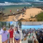 We started off this day at 8 with a morning munch of pancakes, sausage, and fruit. Then we packed up our goodies for one hour drive to Isla Verde beach to take surf lessons. We all did great and faced new challenges that we overcame. Along with the surfing, there was lots of beach volleyball and boogie boarding. After our hard work surfing, we were met with freshly cut coconuts filled with coconut water. We said bye to our instructors, and headed off to a gorgeous ocean-side lunch of a delicious assortment of Puerto Rican Foods. After our feast, we headed down to the beach below for a photo op, and sadly a camera lost its life in the process. We returned home to the BYH for some much needed rest time and our global works check ins.
