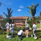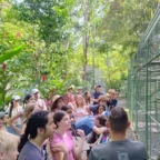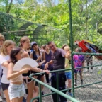 At 7 am, we woke up, got dressed and ready, ate breakfast, and headed to the school to work. All of this was done ate our host families houses. We painted a fence for the school for 3 hours, and then went home and had lunch with our host families. We then walked back to the school, hopped in a bus and drove to an Animal Sanctuary. We had a guide that introduced to all of the animals that are kept there. We talked about why these animals were sent there, and when and how they were able to be released. We then made food for the animals and watched the animals eat the food. We went home and had dinner, than had a bonfire all together, to bond with our host families. We made s’mores and some of us played soccer. Then we went home, got ready for bed, and went to sleep for our second night staying with our host families.