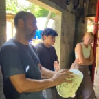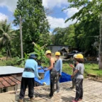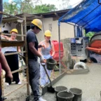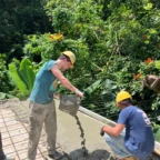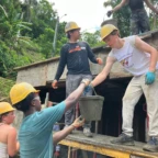 Absolute scorcher today with high humidity, but also hard work. We started around 10:30. We beat the Global Works record average with 60 bags of concrete a day and finished our work on the roof with an hour to spare. We ended our time with William, Eggy, and Angel. They gifted us bracelets with the Puerto Rican flags on them to remember the work we put in to service the community and the locals gratitude, but also the hardship that hurricane Maria still has on the people of Puerto Rico.