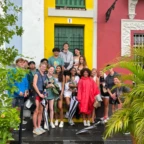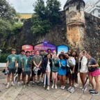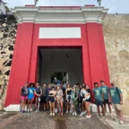 We arrived in San Juan and everybody was ecstatic. We met our guides, Lauren and Fabricio, and separated into two vans to go to our first activity which was lunch at The New Reef. Our lunch options were steak, fried chicken, pork, and Alfredo pasta. Everyone loved their meals, we didn’t like the rain so much though! Fortunately it cleared up for our walking tour in old San Juan. Our tour guide led us through the city with Interesting history and funny anecdotes. We visited the princess promenade, the wall of San Juan, the many forts that were built and the church. Each destination was covered in rich and unique culture. After an exciting and informative historical tour we popped into multiple local shops for souvenir shopping. Then we ended the trip to San Juan on a sweet note! POPSICLES! We then traveled to The Big Yellow House where we’ll stay for the next few days. We are so happy for how the first day went and so excited for the days to come.