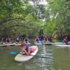 After our conversation, we had a little more time before our last adventure of the day paddle boarding. We paddled up the river and learned about the nature and wildlife that surrounds us. We were taught about the many kinds of mangrove trees and the animals that they house. We also discussed the need for nature and how we can help take care of the world around us. We also were able to see turtle nests that were being protected. We finished the night with some more chicken, fish, rice, beans and salad and had a sweet treat of ice cream sandwiches for all. Overall great day and we are excited for tomorrow, our last full day in Puerto Rico!