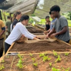 Today we left the Big Yellow House in search of a new home. We made a pit stop along our journey to a Cacao farm. At the farm we split into groups with some of us filtering soil, and some of us taking inventory of the cacao trees. We were able to help them do three weeks worth of work in just a few hours. When the work was complete, we received a hearty lunch and a taste of the chocolate manufactured next to the property. The chocolate was delicious 80% cacao. It was much better than the stuff you find in the states.