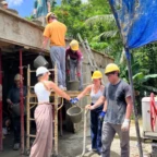 The morning was very productive. We are working on the roof and got over a quarter of it completed. Then we took a break for lunch over at Angel’s house. We had rice, beans, and chicken, which was really tasty. We also celebrated Eggie’s birthday with some birthday cake.