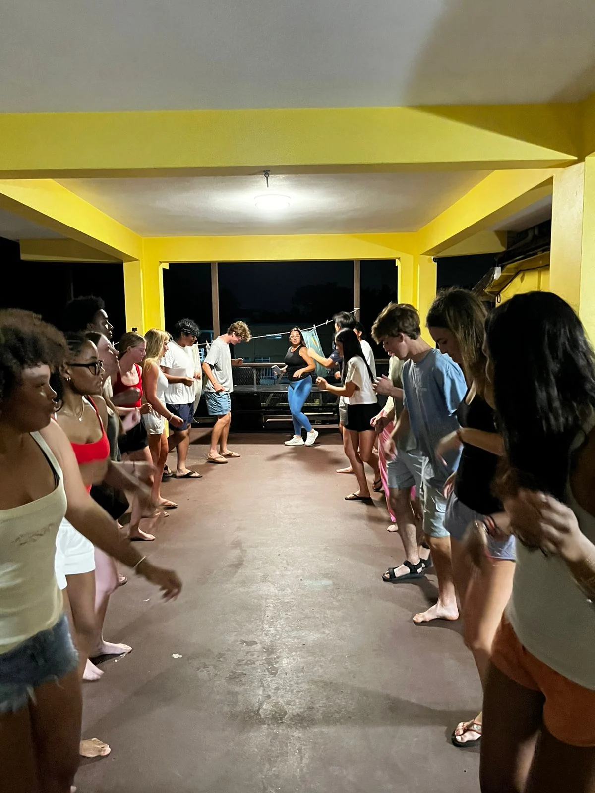 For lunch, we had some BUSSIN chicken wings accompanied by the best beans, rice, and of course, salad. After the work was done, they surprised us with popsicles! When we got back, everyone rushed to get changed for the beach. We had an incredible time at the beach with spikeball, taps, and chicken fights surrounded by beautiful scenery. Hungry and tired, we came back to Big Yellow House and chowed down on a Puerto Rican traditional meal of pasta bolognese, with salad, of course. Freshly showered, we headed upstairs for some salsa lessons taught by the nationals pitcher’s aunt, Yara. After 20 minutes of some basic moves and stepping on toes, we began getting the groove down, even mastering some complex steps, followed by a BYH salsa-rave. Preparing for an early morning, we are ending our night with another shower, night time fun, and packing.