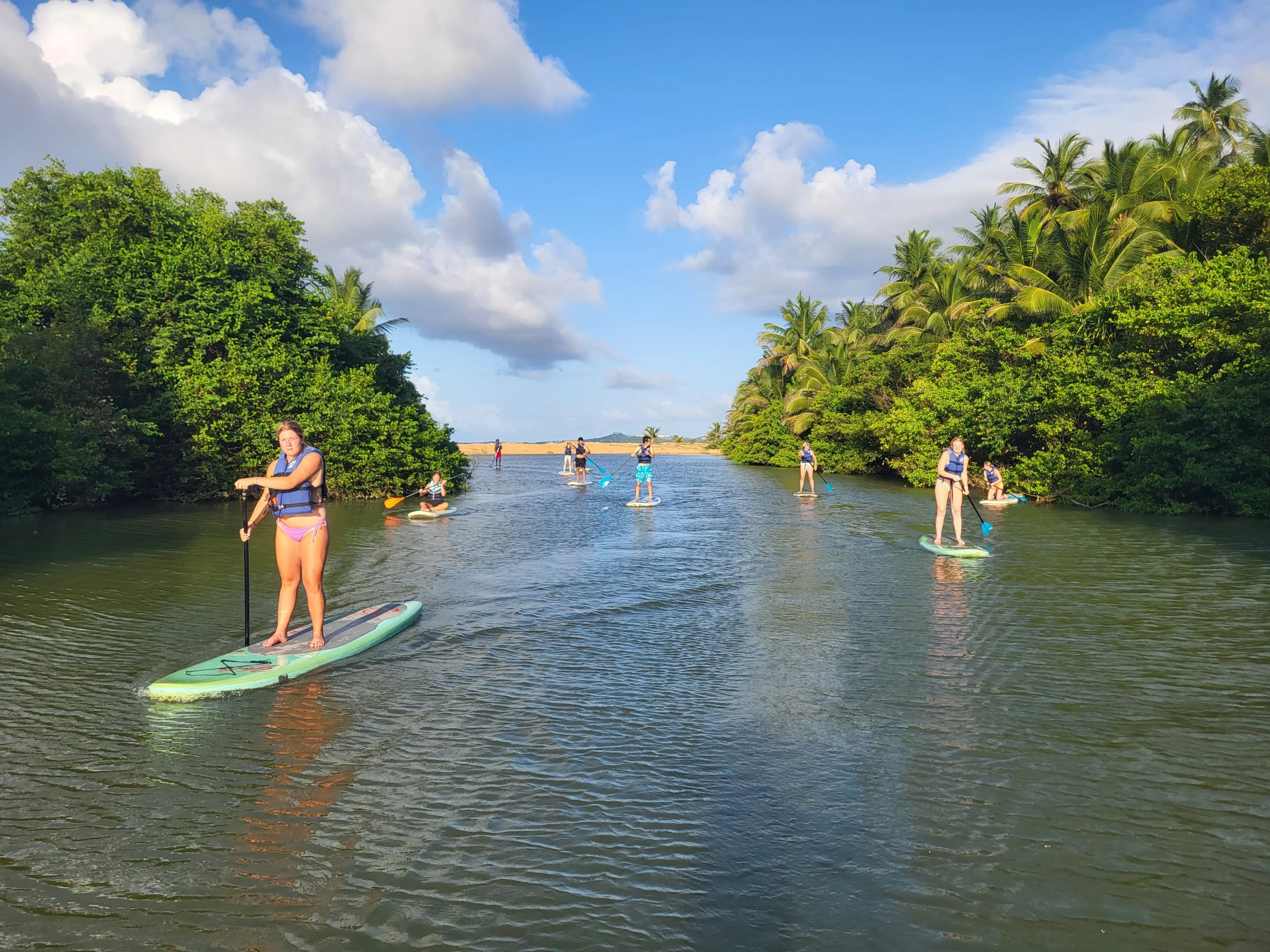 After our conversation, we had a little more time before our last adventure of the day paddle boarding. We paddled up the river and learned about the nature and wildlife that surrounds us. We were taught about the many kinds of mangrove trees and the animals that they house. We also discussed the need for nature and how we can help take care of the world around us. We also were able to see turtle nests that were being protected. We finished the night with some more chicken, fish, rice, beans and salad and had a sweet treat of ice cream sandwiches for all. Overall great day and we are excited for tomorrow, our last full day in Puerto Rico!