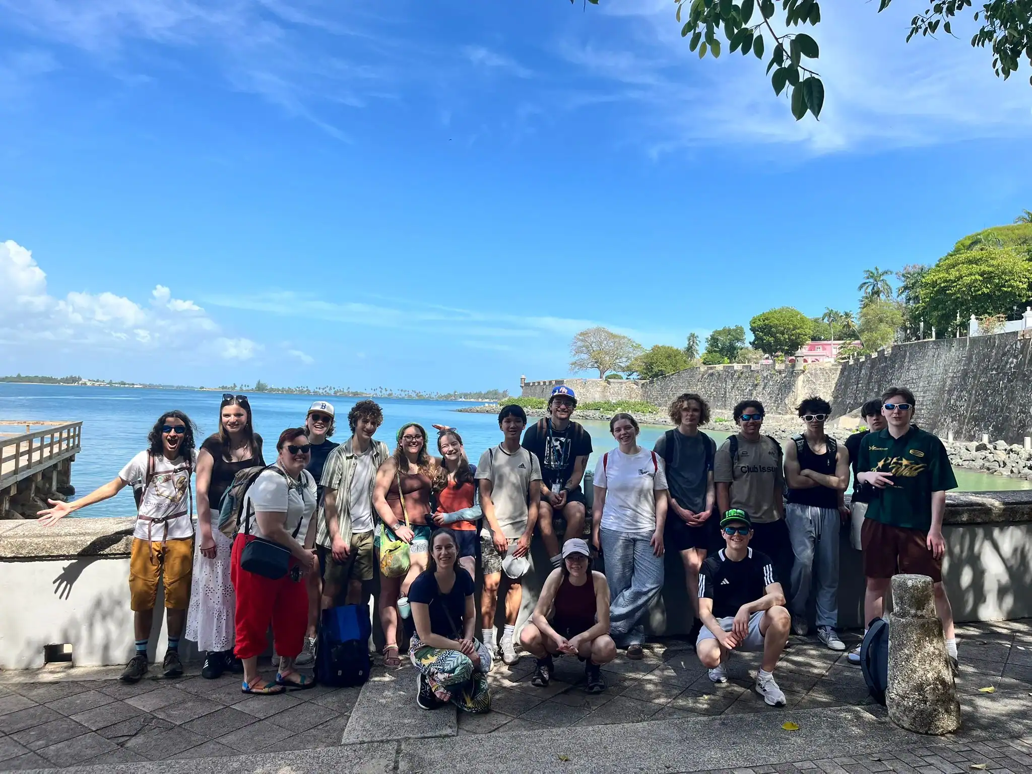 We started the day far too early, and nobody wanted to wake up. But groggily we climbed out of bed, got ready, and stumbled to the café. The food, magical. The atmosphere, magical. The energy, perfect. The weather outside, GOATED. When we finally left, the weather had somehow jumped about thirty degrees up from when we entered. But Alex, Fernando and their guaguas (vans), saved us from the heat. After a while in the vans, we pulled up to Viejo San Juan and met up with Juan, our guide for the morning. He has been doing tours since 8th grade, for five years. He told us all about the history of Viejo San Juan but nobody could listen because there were too many cute dogs, adorable cats, and slinky lizards in the background. After a few hours in the sun, we recharged in the AC of El Jibarito and enjoyed a yummy lunch of the og chicken rice and beans.