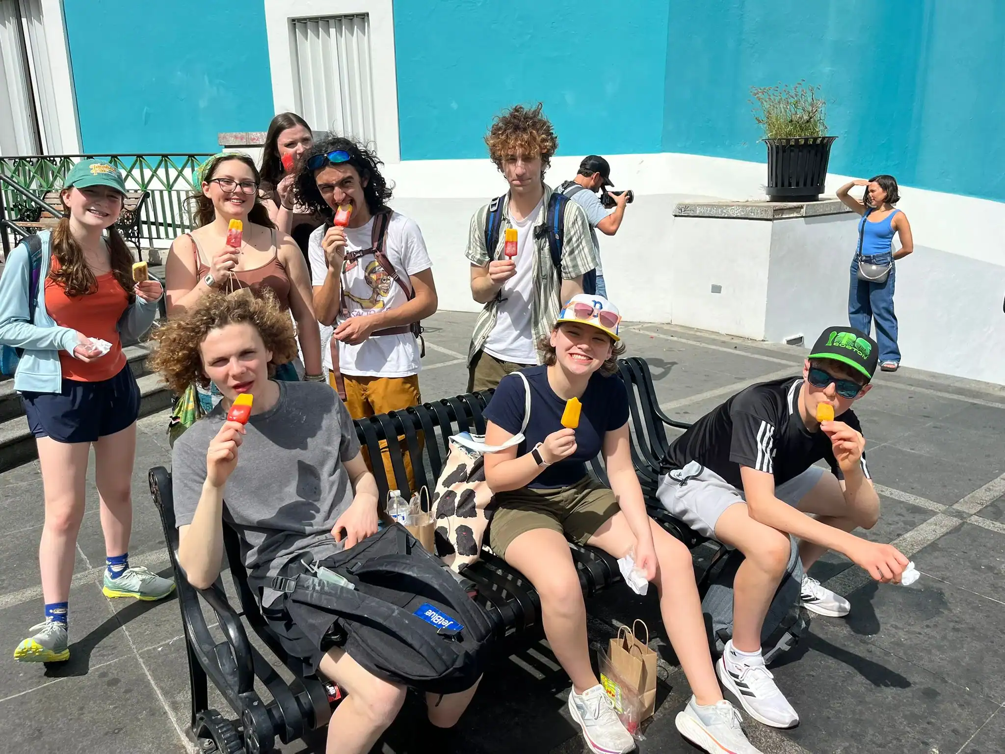 We had some free time or should I say tiempo libre, lots of us got “Dunkies” so that we might have some energy for our sitting. Across the Atlantic we go! The plane ride was a bit bumpy, musta been all dem potholes. No but really, they said it was the perfect day for flying, but then they kept having to get on the speaker thing and be like “MB chat, there be turbelence” (read that with a pirate voice) the plane had a good selection of peliculas (movies). Nahar watched the Superman movie that came out like a bit ago. Xander watched the flight path (mmmmmm ground speed). Some slept, some wept, others wished it was sept (cuz like september is a cool month and lowk it was caliente (that’s hot) on the plane). #sweating.