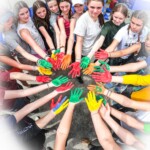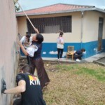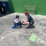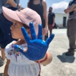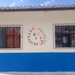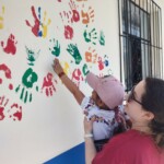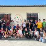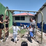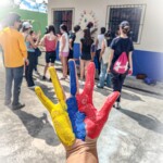 When the meal ended, we painted our hands in various colors (verde, rojo, amarillo, and naranja) and pressed them onto our newly painted wall. We took many pictures to show the success of our three days of hard work. After that, we had some free time. Some people tanned in the sun, while others read, and still others played cards.