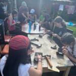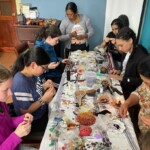After lunch we divided ourselves once again, into those who would go to make leather wallets and those who would go make jewelry. The jewelry makers, including both of your wonderful blog writers today, visited Sumak Muyo, an indigenous women´s cooperative who make intricate jewelry from natural materials including beads and seeds from throughout Ecuador, including the Amazon and the coast. We saw their beautiful designs, and took inspiration to create our own with a lot of help from the wonderful, patient, and kind women of Sumak Muyo. Once we finished our beading, we walked among many delighful stray dogs to recover our lost half. We discovered the other group feverishly working away on the wallets they had made out of leather, with the help of a local artisan, German. While waiting for them to finish, some of us wandered out to the street where we spent some quality bonding time with a pig and a rooster. As the pig made a daring escape squeezing through his fence, we worried we could be considered accessories to his crime.