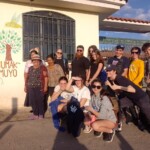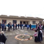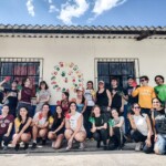 Following the game, we walked back to the school for a beautiful closing ceremony. Different age groups of people of La Calera performed a series of traditional dances for us, including many shy little kids curling into each other as their older friends stumbled over the steps that one day they will perfect. Their older counterparts did mesmerizing dances with long pieces of fabric that covered their skirts. Afterwards, they brought us in to dance with them, and, surprisingly enough, we didn’t feel like outsiders in disguise, but a part of their world, a similar feeling to when people rubbed colored flour on our faces for Carnaval being celebrated on the streets of Quito. For some, the dancing was the best part of the whole trip because that belonging felt like the moment they had been waiting for. Afterwards, we decided that instead of putting our names on our handprints, we wanted the kids’ handprints to join ours instead, following Global Works´ model of working with, not for. The adults were happy to oblige and many photos were taken of Millenium kids with their newly found little friends.