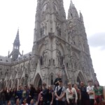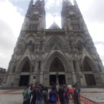 Our first stop was TeléferiQo, a cable car ride which took us from an already high altitude of 10,000 feet, to an even higher 13,000 feet on Pichincha, Quito’s friendly neighborhood volcano. The ride was very enjoyable; as we sailed through the clouds we watched a host of animals, plants and even some brave hikers taking the ascent by foot. Due to the change in elevation we were all a little short of breath when we reached the top, but our lungs soon acclimated as we began a short walk to reach a scenic overlook. At the overlook we were met not only by breathtaking views of Quito below and the views of mountains and ice caps ahead but also by a swing overlooking the city. After swinging through the clouds, we took a stop at a cafe/shop where we bought lattes, chais, other drinks and souvenirs. We then descended back down the mountain and boarded the bus to go to the local market where we tried new fruits and explored. Our last stop before lunch was a beautiful gothic cathedral called La Basilica del Voto Nacional. We explored the architecture and learned about the history of the cathedral.