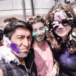 Lunch was so good. We ate at a delicious restaurant in the old town and indulged in another traditional meal of sausage (or veggie sausage), potato pancakes (llapingachos), eggs and vegetables. We enjoyed a delicious, refreshing lime drink with our meal and then headed out to continue exploring el centro histórico. We were met outside by the locals celebrating Carnaval and a variety of celebratory traditions including face fulls of dyed flour and spritzes of foamy soap. We had a great time moving through the city and almost all of us had faces full of purple, blue, and red as well as soapy clothes by the time we arrived at the chocolateria.