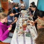 At 3, we split into two groups. One group went to make jewelry with an indigenous women’s organization in the community Sumak Muyo, while the other group went to make wallets with the local leather artisan. At the leather shop, we got to see all of the different shoes that German, the leather craftsman, made, and we got to pick our own patterns for wallets. Some people made wallets with embroidered patterns on them, and others went for a more minimalist look. We could choose from many colors, including green, chocolate, honey, and blanco. The leather pieces were already cut out for us, but we glued them and nailed holes in them before carefully hand stitching the leather. It was difficult and time consuming, but we were all successful and left the shop with our own hand-made leather wallets. While some people were finishing their wallets, others bought popsicles and sat on the curb observing the everyday joys of La Calera. We heard dogs barking, roosters making way too much noise, and dads carrying their kids home on their motorcycles. When the last of the wallet makers were finished, we got back on the bus and said buenas tardes to Efren and drove back to our hotel in Cotacachi. We watched the fog in the mountains and saw the sun set into the trees. When we arrived at the hotel, we froze to death in our showers made from dribbles of snow melt from the Andes and had a meal of chicken and fries (us vegetarians had lentils, luckily they were gluten free).