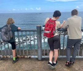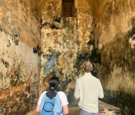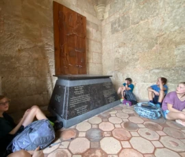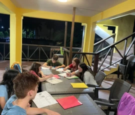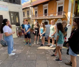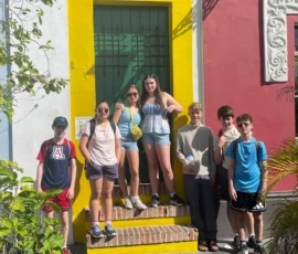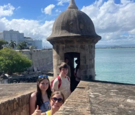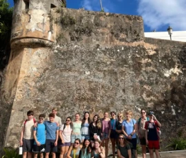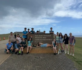 Today we went to historic Old San Juan and went on a tour of the city from a decolonial perspective. On the tour we learned about the underlying colonial histories of the city, as well as many concepts that tie in to what we’ve been studying in humanities, such as the independence movement and disaster capitalism. We ate lunch at an authentic Puerto Rican restaurant where we enjoyed traditional foods. After lunch we went to El Morro, a heavily fortified Spanish fortress that protected the city of Old San Juan, where we broke up into small groups and explored the deep history. After that we went to Calle de la Fortaleza for souvenir shopping. We enjoyed a sweet treat of tropical popsicles before heading back to the Big Yellow House and spending some time at the beach! After that, we enjoyed a Puerto Rican community dinner before sharing an insightful conversation on the events of the day. Hasta Mañana!