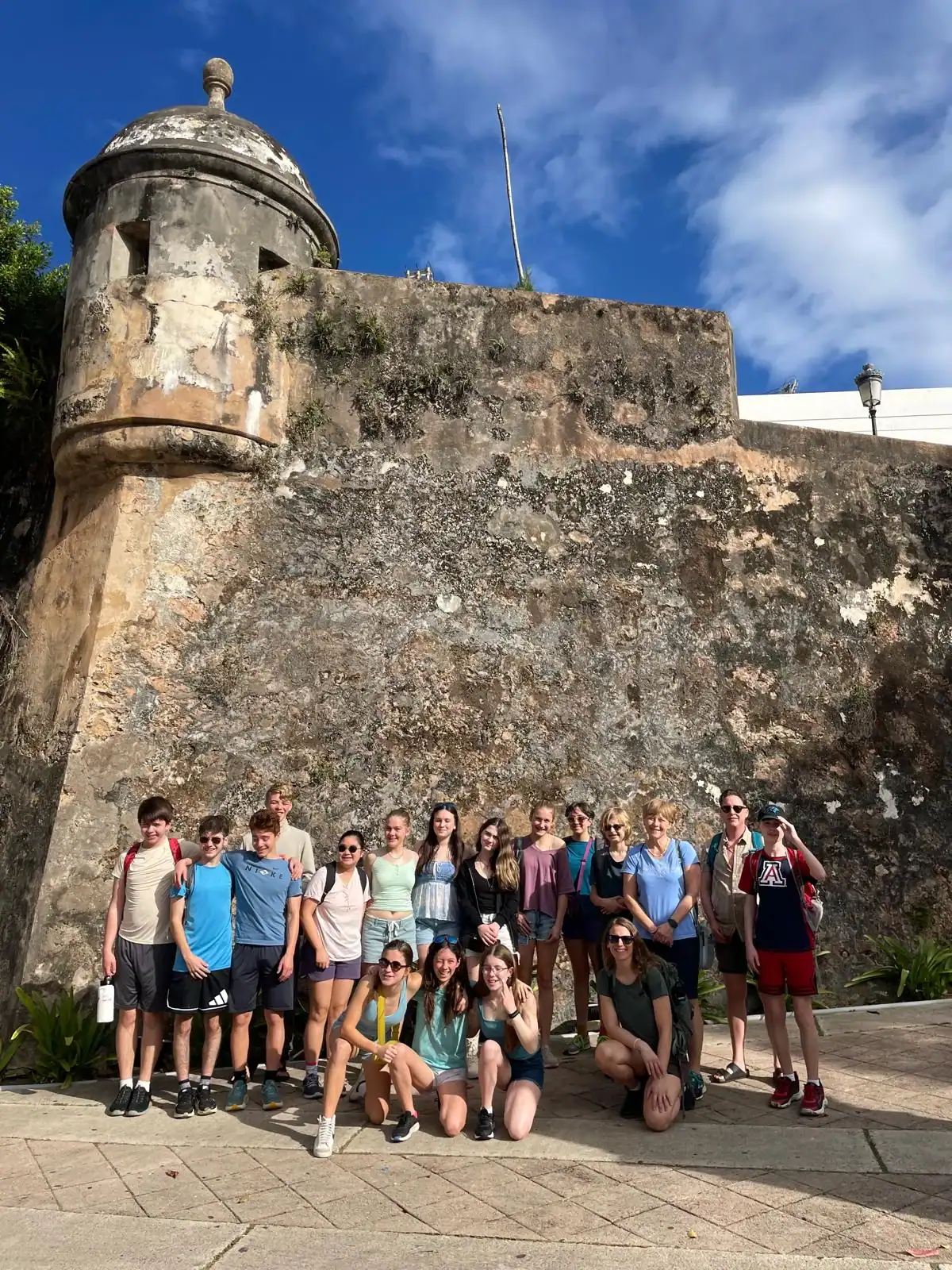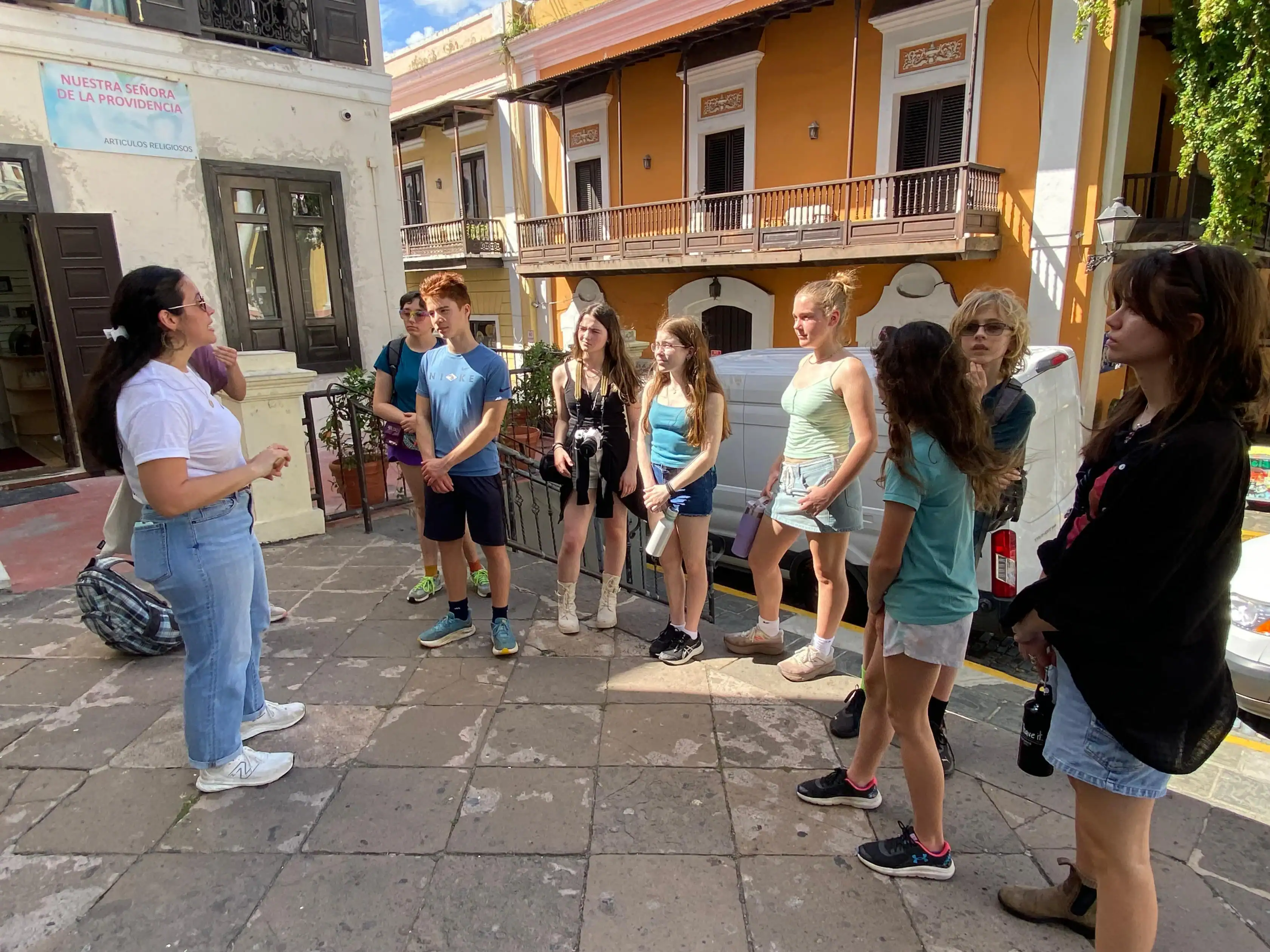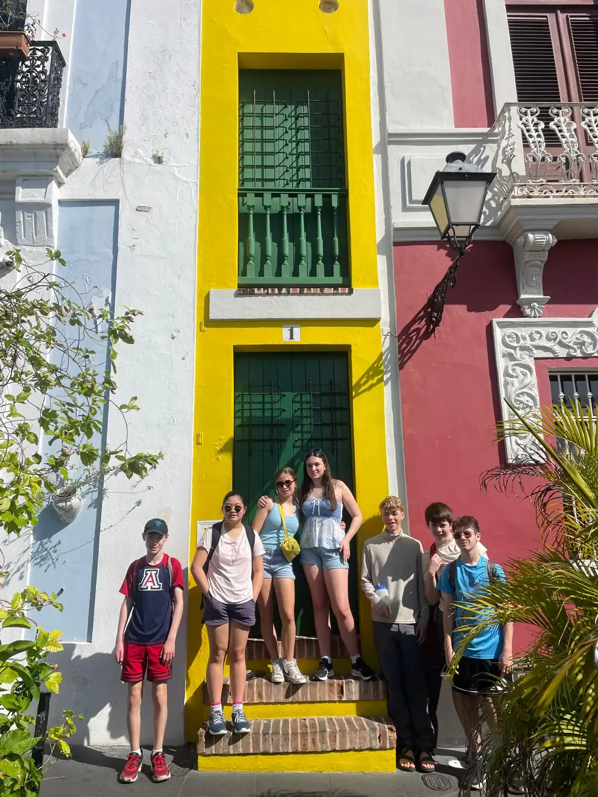 Today we went to historic Old San Juan and went on a tour of the city from a decolonial perspective. On the tour we learned about the underlying colonial histories of the city, as well as many concepts that tie in to what we’ve been studying in humanities, such as the independence movement and disaster capitalism. We ate lunch at an authentic Puerto Rican restaurant where we enjoyed traditional foods. After lunch we went to El Morro, a heavily fortified Spanish fortress that protected the city of Old San Juan, where we broke up into small groups and explored the deep history. After that we went to Calle de la Fortaleza for souvenir shopping. We enjoyed a sweet treat of tropical popsicles before heading back to the Big Yellow House and spending some time at the beach! After that, we enjoyed a Puerto Rican community dinner before sharing an insightful conversation on the events of the day. Hasta Mañana!