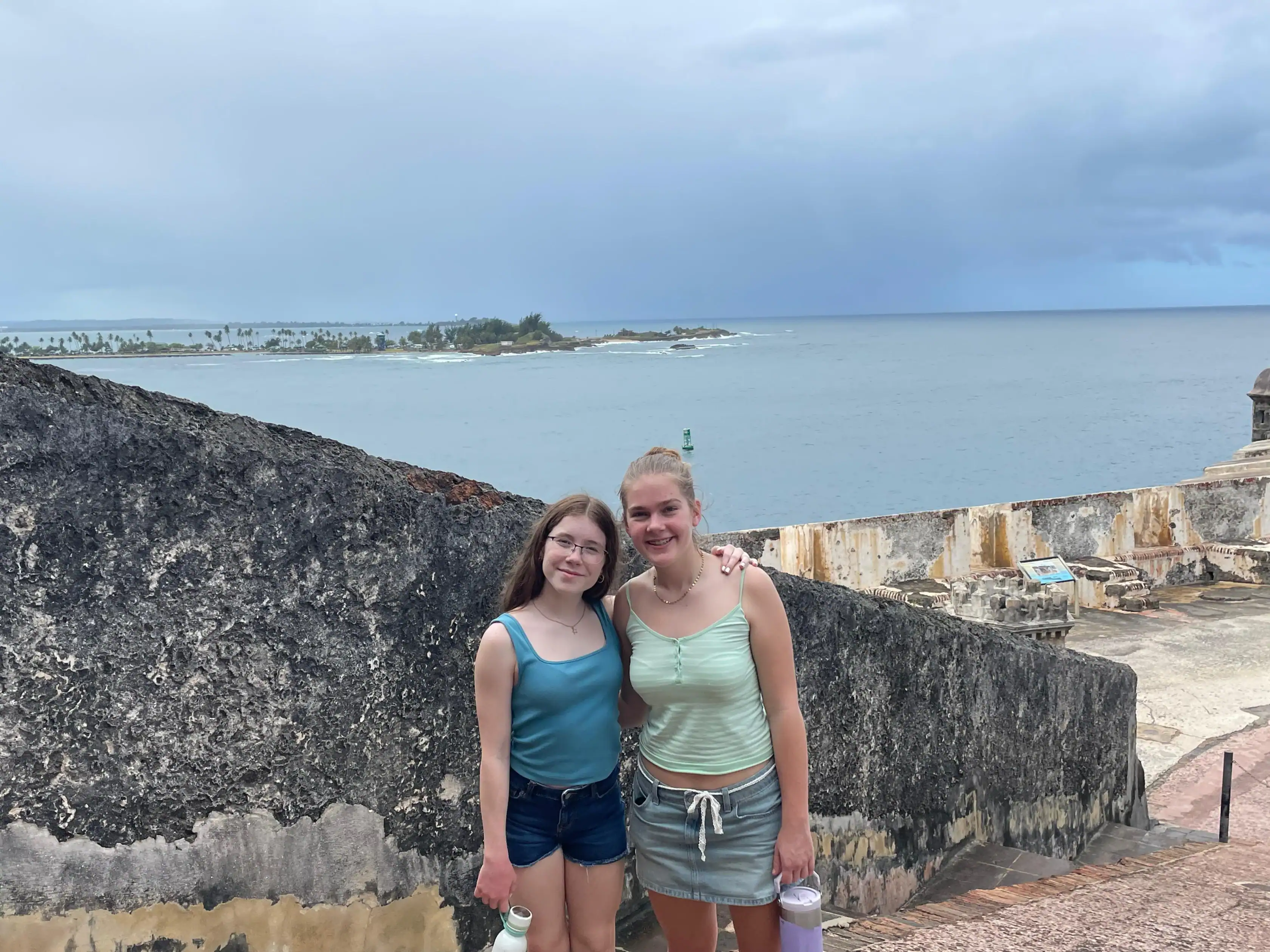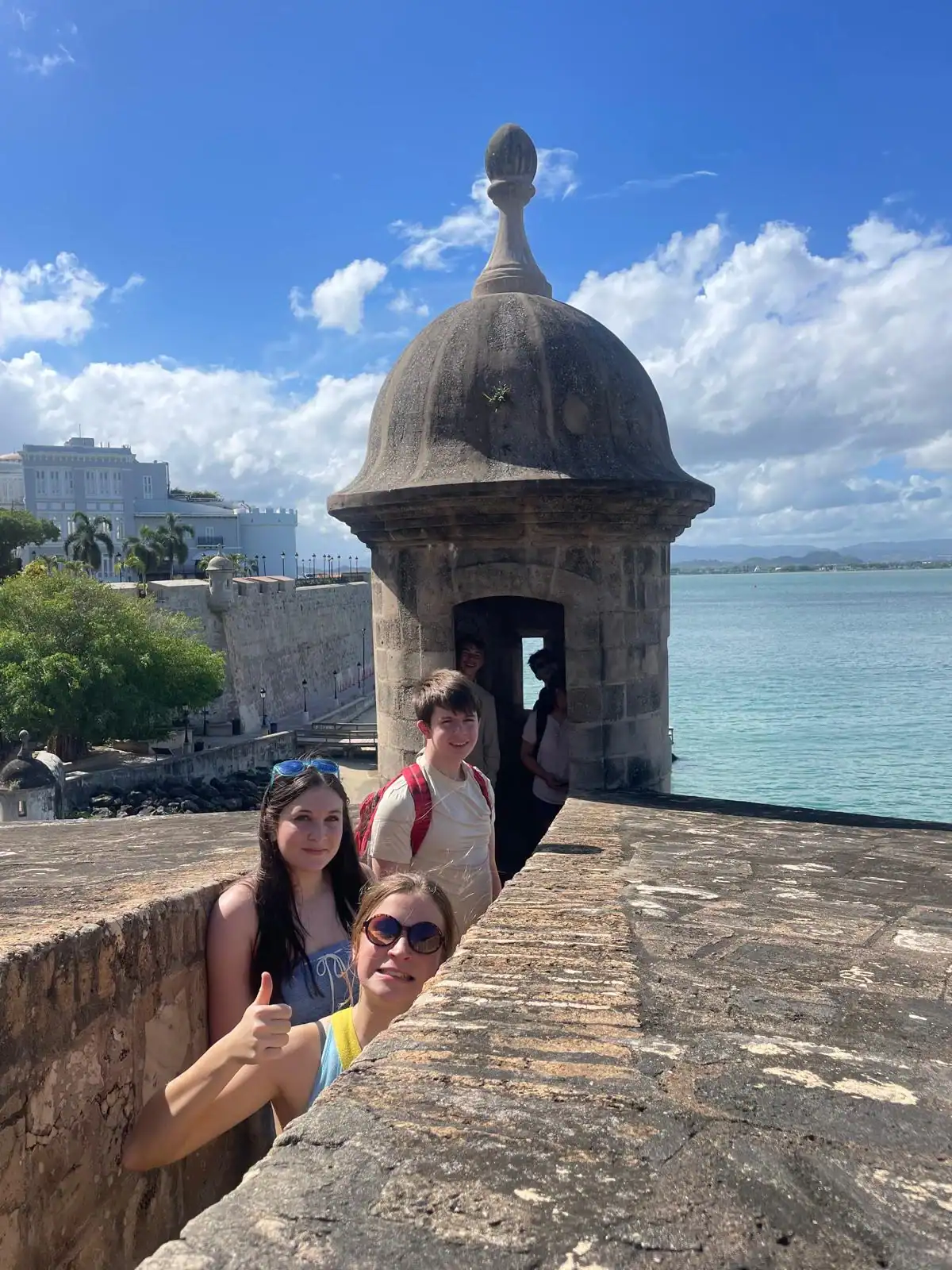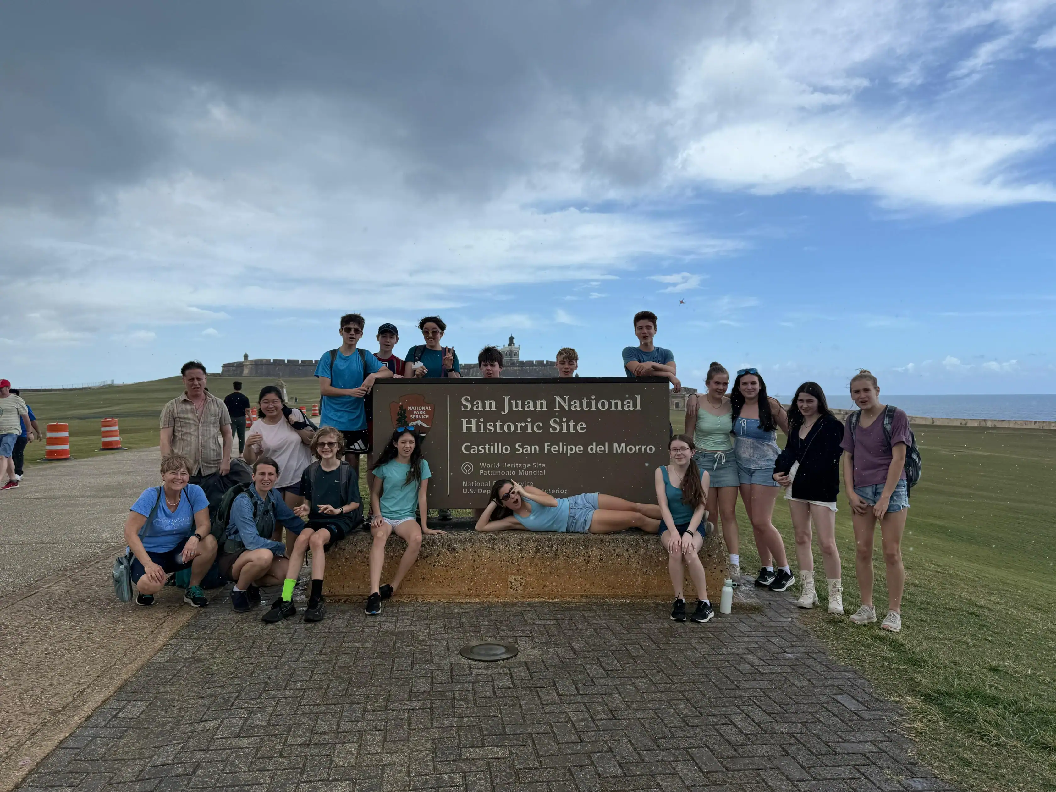 Today we went to historic Old San Juan and went on a tour of the city from a decolonial perspective. On the tour we learned about the underlying colonial histories of the city, as well as many concepts that tie in to what we’ve been studying in humanities, such as the independence movement and disaster capitalism. We ate lunch at an authentic Puerto Rican restaurant where we enjoyed traditional foods. After lunch we went to El Morro, a heavily fortified Spanish fortress that protected the city of Old San Juan, where we broke up into small groups and explored the deep history. After that we went to Calle de la Fortaleza for souvenir shopping. We enjoyed a sweet treat of tropical popsicles before heading back to the Big Yellow House and spending some time at the beach! After that, we enjoyed a Puerto Rican community dinner before sharing an insightful conversation on the events of the day. Hasta Mañana!