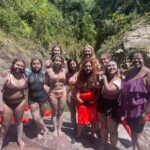 Today, Thursday, March 16th, 2023, we started the day with breakfast together as usual. We went to meet Mika the owner of Campos Sofia and we learned about the different elements of the world, Air, Water, Fire, Air, and the last element that is part of every human being is love and learn about the Tiano Culture. We connected with the fire in the sacred space and shared what our purpose was to come to Puerto Rico. Mika shared the different benefits of the purple clay and how the community used it in different ways, for their skin, hair, and armpits. We all put the clay on our skin, face, hair, legs, and arms before we experienced the water element of being renewed and cleansed.