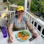 We had a vegan lunch made by one of the members of the community. Even though not everyone was vegetarian, they were content and enjoyed the homemade food. We sat on big leaves that came from the original area and played with their dog, Cosmo.