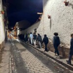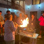 After a breakfast filled with new fruits and foods we embarked on a two-hour bus ride to a remote village, eager to immerse ourselves in its culture. We learned indigenous words, ready to communicate with the locals in Quechua. Upon arrival, we were warmly welcomed with a serenade and promptly divided into groups for service work. Some mixed cement while others painted materials for a water tower. After hours of labor, we were honored with a flower ceremony, symbolizing our acceptance into the community. Living with indigenous families, we embraced their way of life, trying on traditional attire, assisting with chores, and bonding over shared experiences. We spent time seeing our “parents” homes and met their children and pets. We then took a hike to honor Mother Earth preceded by a joyful dance with our new families. Wrapping up the day, we explored an archaeological site before stopping at a market and getting some chocolate. We later headed back to the hotel to enjoy a debrief and to play a game that helped us recognize our opportunities and differences, while we reflected on the day. Finally, we sat by the fire, ate homemade pizzas with s’mores for dessert.