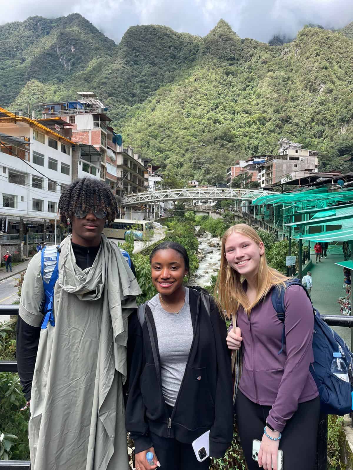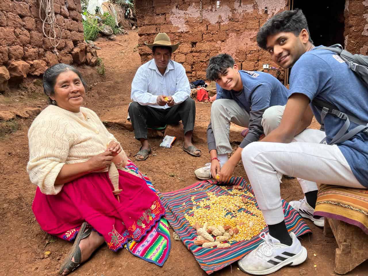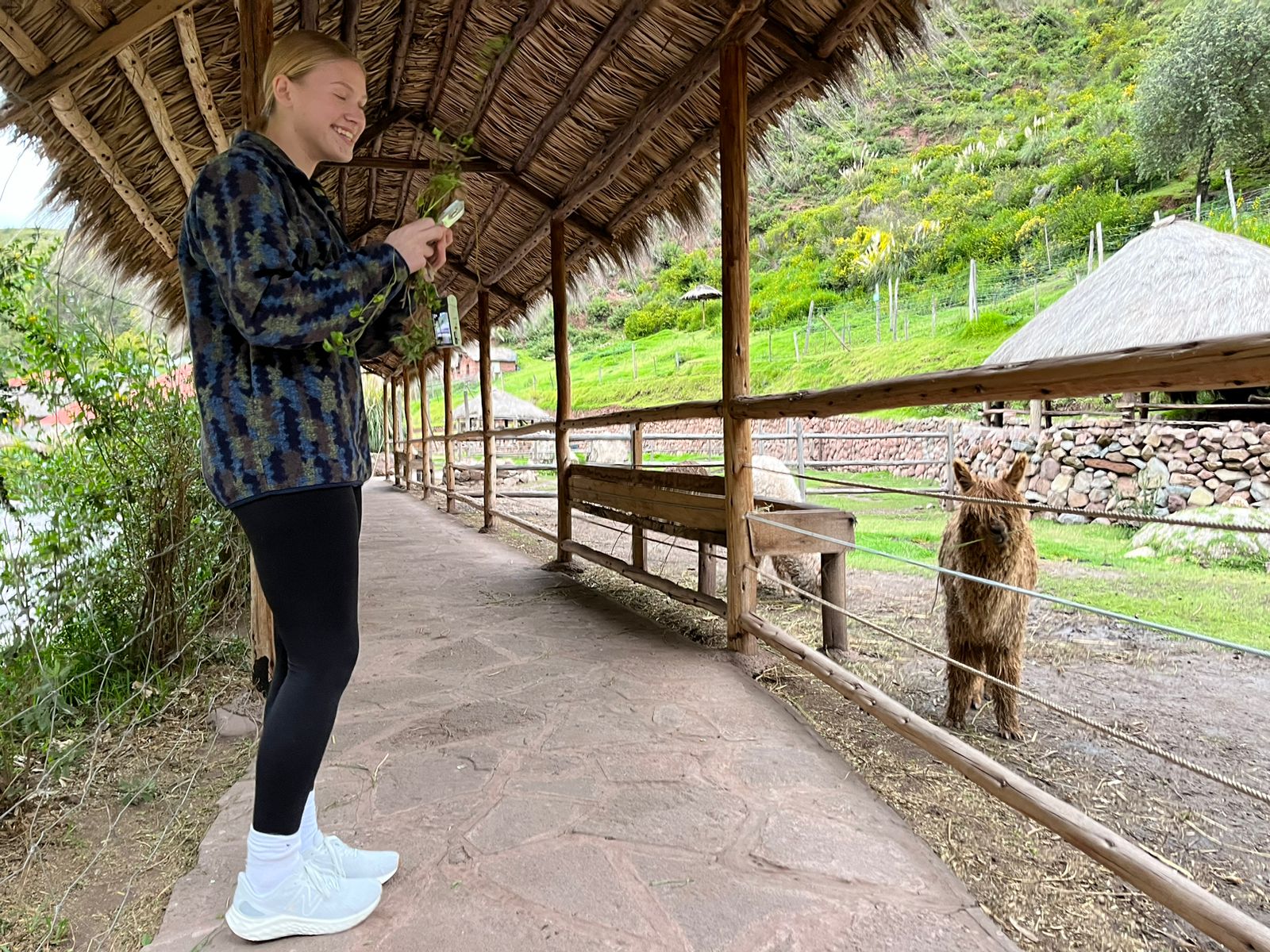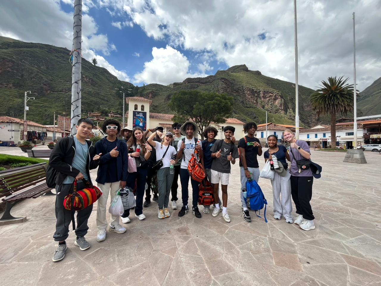 After a breakfast filled with new fruits and foods we embarked on a two-hour bus ride to a remote village, eager to immerse ourselves in its culture. We learned indigenous words, ready to communicate with the locals in Quechua. Upon arrival, we were warmly welcomed with a serenade and promptly divided into groups for service work. Some mixed cement while others painted materials for a water tower. After hours of labor, we were honored with a flower ceremony, symbolizing our acceptance into the community. Living with indigenous families, we embraced their way of life, trying on traditional attire, assisting with chores, and bonding over shared experiences. We spent time seeing our “parents” homes and met their children and pets. We then took a hike to honor Mother Earth preceded by a joyful dance with our new families. Wrapping up the day, we explored an archaeological site before stopping at a market and getting some chocolate. We later headed back to the hotel to enjoy a debrief and to play a game that helped us recognize our opportunities and differences, while we reflected on the day. Finally, we sat by the fire, ate homemade pizzas with s’mores for dessert.
