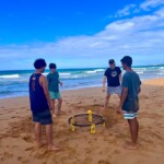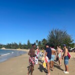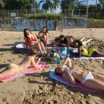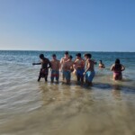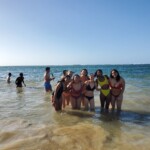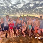 After the long day of hard work at the work site, we went back to the big yellow house to change. From there, we walked as a group to the beach. The sun was beaming over our heads and the sand was soothing. Today was a great day to bond. With some people throwing a football to others swimming in the ocean. Everyone was having fun. Before we had to leave , everyone rushed to the water to take a photo.
