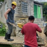 We split into two groups. One group continued to build 2 more columns. The other group walked up the hill to another house. They moved cinder blocks up a ramp for the construction of another house. Once the work day ended, all of us went to the grocery store to pick up snacks, including some Puerto Rican food!
