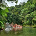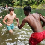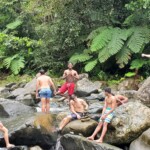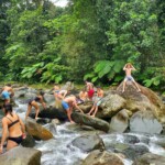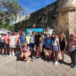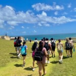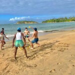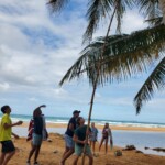 Final blog: Our last day was full of fun and more than anything…water. we packed up and left the big yellow house to head to El Yunque Rainforest. We hiked down and trail under the canopy of the forest to the most beautiful swimming holes. We hopped around on rocks until it was time to head to the beach. There we ate mofongo – a typical Puerto Rican dish made of plantains. We then checked into our beautiful new hostel called Casa Corral in the town of Luquillo. We had more beach time as almost a whole group played spike ball and football in the sand. Our last adventure was kayaking at night in the bioluminescent Bay. Once we got to the Big Lagoon we put our hands in the water and saw the sparkles of the bioluminescence. It was already late when we got back to our hostel and had our final debrief, sharing so many fond memories from our trip. Our teachers bought us ice cream and we finished the night off with dessert and poker! The bus is picking us up soon so it’s time to go!