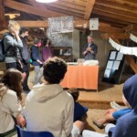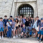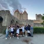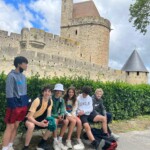 Bonjour! Today, one group of people woke up early, and another group woke up later. Then, we had breakfast at the hotel and went to visit the citadel and chateau of Carcassonne. There, we broke into groups and had a scavenger hunt. We then toured the castle some more and learned more about it. After a picnic lunch, we took a bus ride to the town of Pouzol (only 700 people live there!) where we did some service work clearing up a space in the woods for people to rest while walking on the Chemin de St. Jacques (also known as the Camino de Santiago), the pilgrimage route to Spain. It was windy! We then had a goûter (afternoon snack) there and took the bus back to the hotel. Once reconvened, we took a break to get ready for dinner in our respective rooms for 1 hour and 15 minutes. Then we got to go back inside the castle for dinner – salad, risotto, and fruit crumble – then returned to the hotel to go to bed.