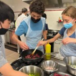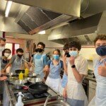 Bonjour! Today we spent our second day in Aix-en-Provence, which began with 8:30 breakfast at our hotel. After breakfast, we returned to our respective rooms to pack-up for our day. Upon arrival in the central part of Aix, we divided into 2 large groups; one enjoyed a cooking class (and its result – stir fried beef and veggies) while the other explored the large open market; then the groups switched activities. Once reconvened, we boarded our bus and traveled just over an hour to the tallest aqueduct in the world, built by the Romans in 19 B.C.E, the Pont-du-Gard. After a brief exploration of the aqueduct, we enjoyed a goûter (afternoon snack) prior to returning to the bus. The bus ride to Carcassonne was, although enjoyable, a lengthy 2 hours. After dropping out stuff in the hotel (our favorite so far) we walked a brief distance to our tapas dinner. After we enjoyed our dinner we returned to our hotel and went to bed.