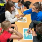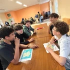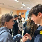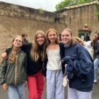 Today we woke up TRÈS early to go to the school of the pen pals we have written to! Everyone was very excited but also a little bit scared. 😱 It was raining a lot so some plans got changed but it mostly stayed the same. When we arrived at the school, we ran as fast as we could to the building and started to see some élèves (kids) Français. We walked up to a meeting room and the first class of students arrived. They looked a lot older than us which was a little bit intimidating. We played a lot of games with many different classes like telephone 📞 (in English and French), charades, geography based board games 🌎 , and many more! It was super fun and slowly but surely we got more and more comfortable. After a while it was time for lunch so we went to the cantine 🥪 . Some people sat with their pen pals and others sat with their new amis français and it was all super fun! After that it was recess which was the highlight of many people’s days and trip. Everyone was talking, joking, and having fun and was très enjoyable. Even though it was raining, we were able to make the most of it and enjoy every second with our friends. After recess we did more games with our pen pals and then was able to have some free time to talk. We introduced some French students to crocadilly oh my! 🐊 and got to know people even better. We went outside and some people played futbol ⚽️ and talked some more. Sadly, then it was time to leave and we said goodbye to our French friends but didn’t forget to find a way to keep in touch! After a shortish bus ride, we got off and got crepes and gelato! C’est très délicieux!!!!! 🍦 We went back to the hotel to frenshen up and then we went out to dinner to enjoy some tapas 🍲! All the food was très bon 😋 ! Once we all finished eating we sang happy birthday to Violet and enjoyed some délicieux red velvet cake 🎂! We are all super excited 😆 for what’s to come and sad the trip is now over halfway done 😔!